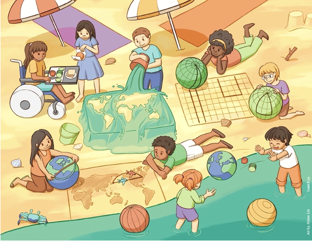 without giving them the chance to discover that on a sphere—on the very planet they stand on—those lines curve, embrace, and eventually cross.