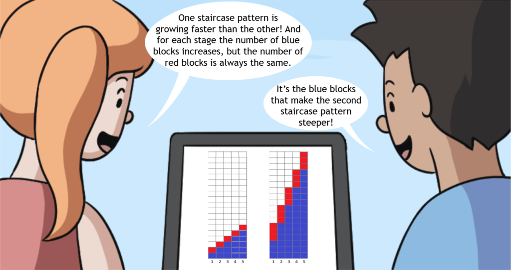 This is the foundational algebra students need to understand—how the growing pattern can be described using a rule that connects x and y.