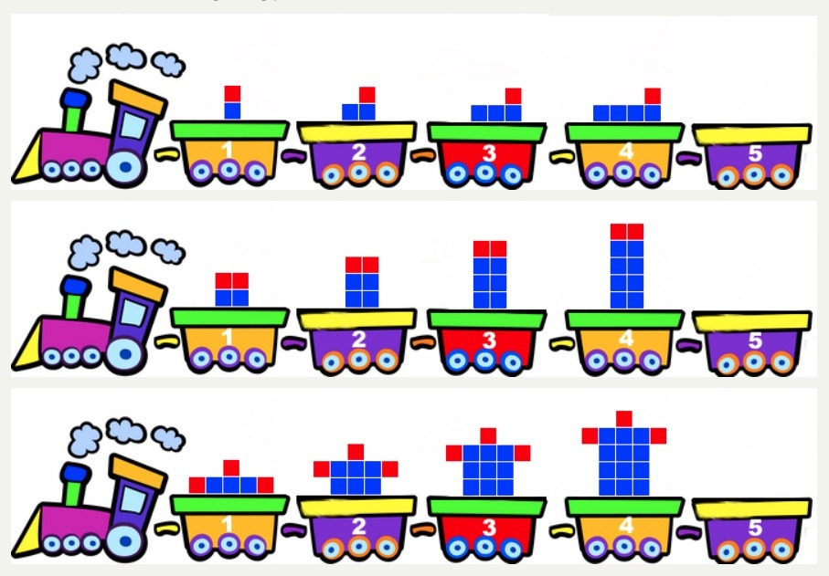 For example, in the pattern below we have used in grades 1-3 classrooms, the number of blocks increases as the train car number changes. how many blocks are in the 10th car?