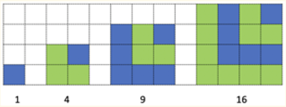 - The first four odd numbers make a 4 × 4 square.