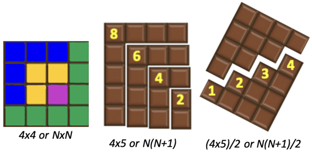 In return, the older students showed them how these same physical models can be used to derive algebraic formulas for the sums of odd, even, and natural numbers.